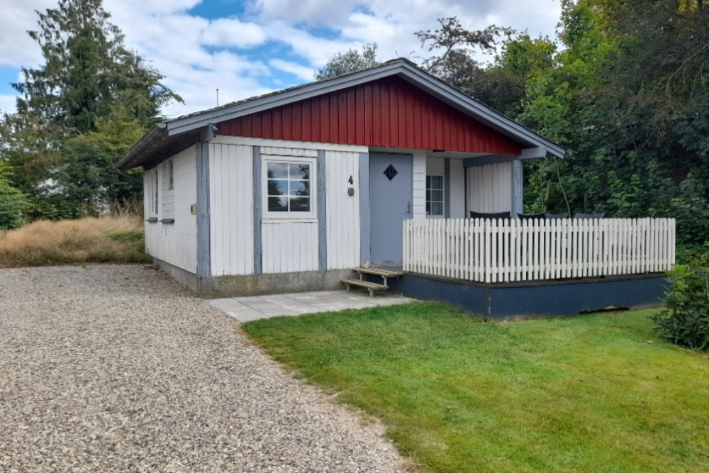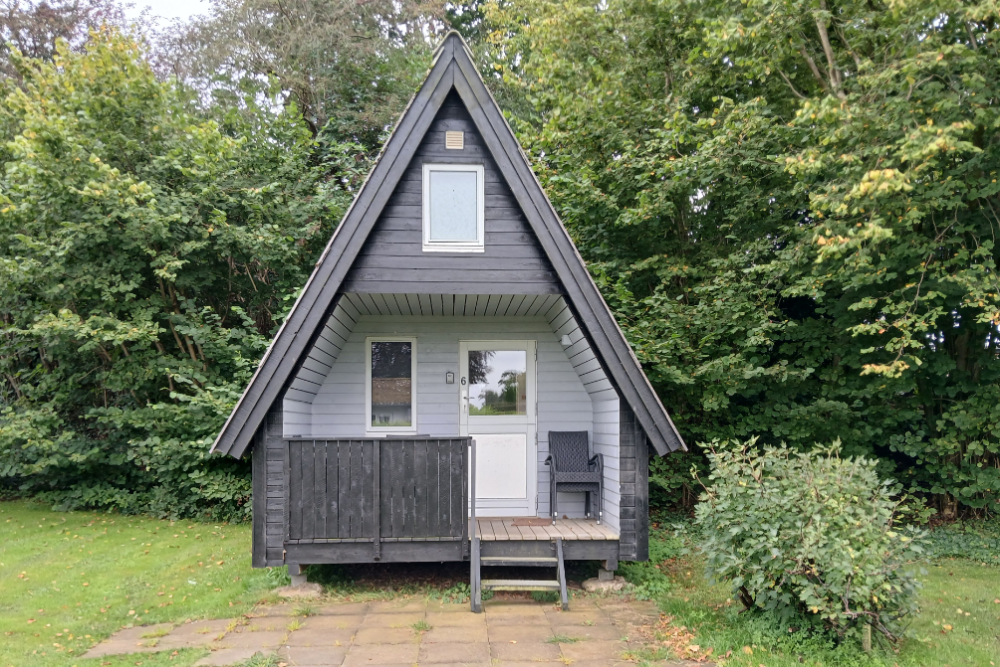 Hytte 4 er den største hytte på pladsen med plads op til 6 personer. Hytten har toilet , bad og håndvask samt en lille køkkenniche med komfur, køleskab og et komplet sæt bestik til 6 personer.